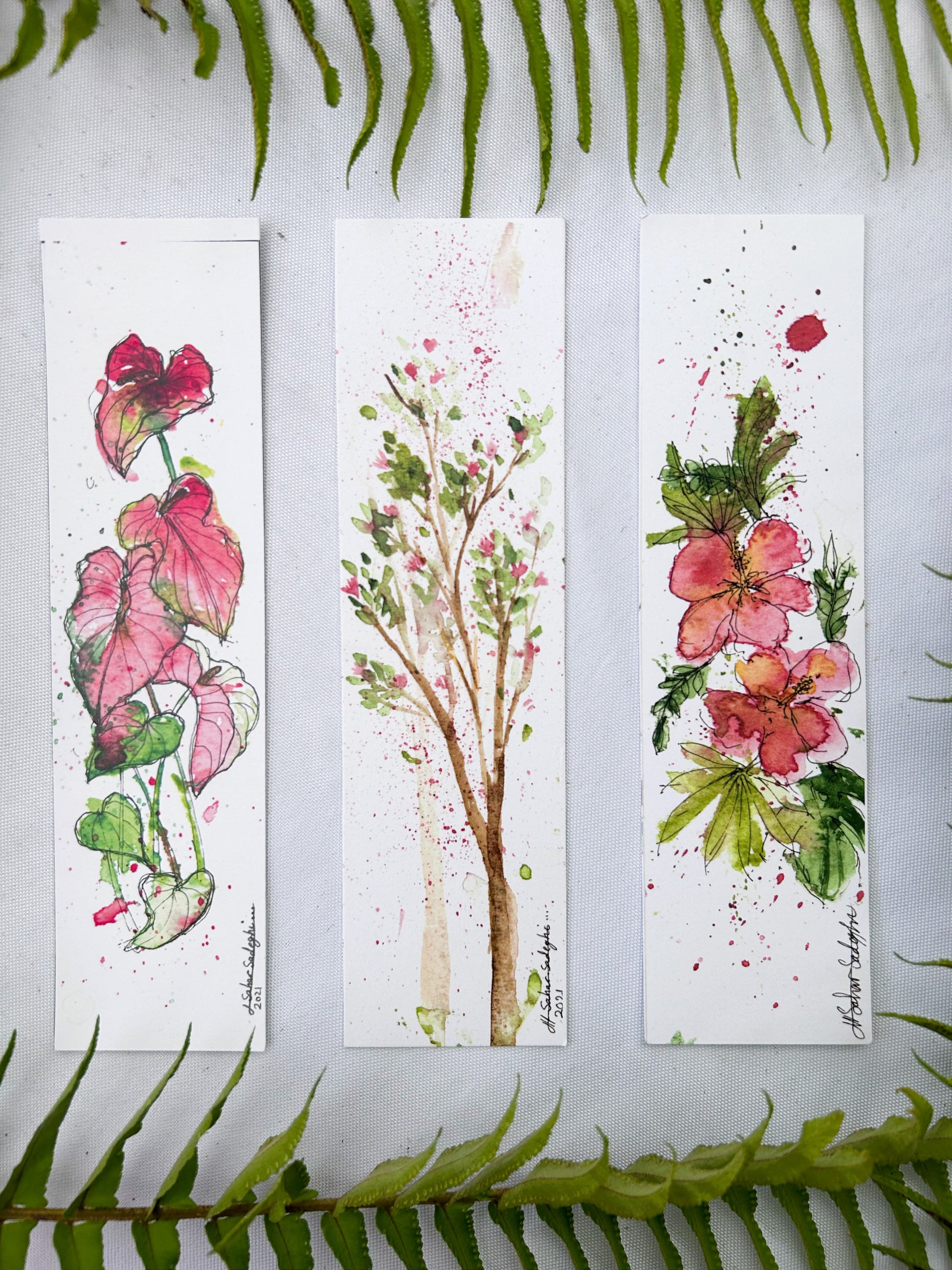 Hawaiian Watercolor Bookmarks, Bundle of 3